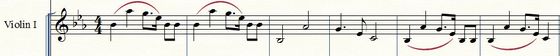 Pierwsze dwa takty, to utwór Beethovena. Trzeci i czwarty takt to utwór Bernsteina śpiewany do tekstu „There's a place for as” („Jest miejsce dla takich jak”), gdzie jego autor skorzystał ze sprytnego zabiegu rozciągnięcia frazy na dwa takty, co nie zmienia proporcji rytmicznej kolejnych dźwięków, jako 4/4/3/1 dla czterech pierwszych nut. Które są identyczne, gdyż przeniesione o oktawę w dół. W piątym takcie robimy ten sam zabieg dla frazy Beethovena a w szóstym zamieniamy ostatnie dwie nuty b na jedną c. I mamy Bernsteina. Fragment ten u Beethovena powtarza się kilka razy w jego drugiej części koncertu i jest wyraźny i dość charakterystyczny. Jego legata, których u Bernsteina nie ma, są powłóczyste, co jeszcze bardziej eksponuje ten fragment.
