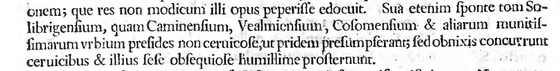 Sua etenim sponte tom Solibrigensium, quam Caminensium, Vealmiensium, Cosomensium & aliarum munitissimarum urbium presides non ceruicose, ut pridem presumpserant; sed obnixis concurrunt ceruicibus & illius sese obsequiose humillime prosternunt.