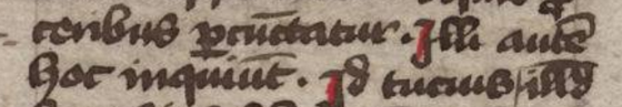 Fragment wyżej, gdzie znak końcowy „e” z chorągiewką w tył odcyfrowano jako: „Illi autem hoc inquiunt.” (Ale oni o to proszą.). Czyli ten sam znak jako „em”, co w Vueolunemn (Weolunemn) i Cosonnemn. I jeszcze ciekawostka, bo zapisuję zamiennie Vueolunemn-Weolunemn, gdyż tak jest napisane to rzekome „vu”, że wygląda jak „w” i może być jednym z najstarszych znanych nam zapisów „w” w pismach związanych z Polską. Szczególnie, że zrost „vueo” jest raczej nieudolnością pisarską niż sensownym zapisem, a „weo” wygląda znacznie bardziej zachęcająco i znajomo.
